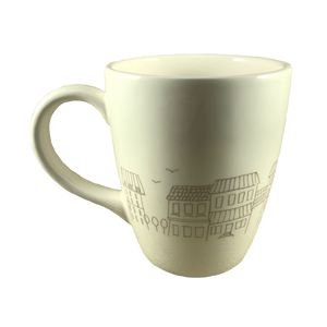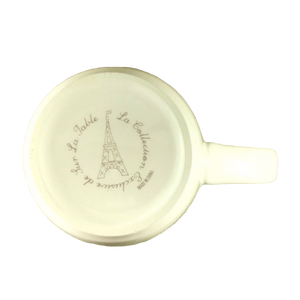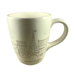 Features a hand drawn appearing Paris scene including the Eiffel Tower which encircles this mug.