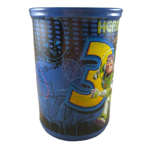 Features artwork wrapping around its exterior surface depicting characters from the Disney Pixar film Toy Story.