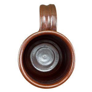 This has the appearance of a hand made pottery mug. I can't be certain if it is hand made, please see the photos to draw your own conclusions.