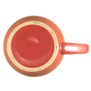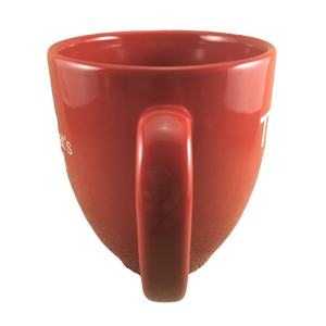 Condition note: there is obvious wear present on the bottom rim. Please see the last photo for a look at this. There are a some places on the exterior surface where the finish is not absolutely perfect, I could not capture these in the photos because you have to be looking at it from certain angles to see it. Please see the photos for an accurate look at this mug's condition which is very good to excellent. There are a few tiny spots where the white color in the letters is missing, this is visible in the T and E in TRUE. The paint on the handle has a sort of two tone appearance, it is not uniformly the same red color.