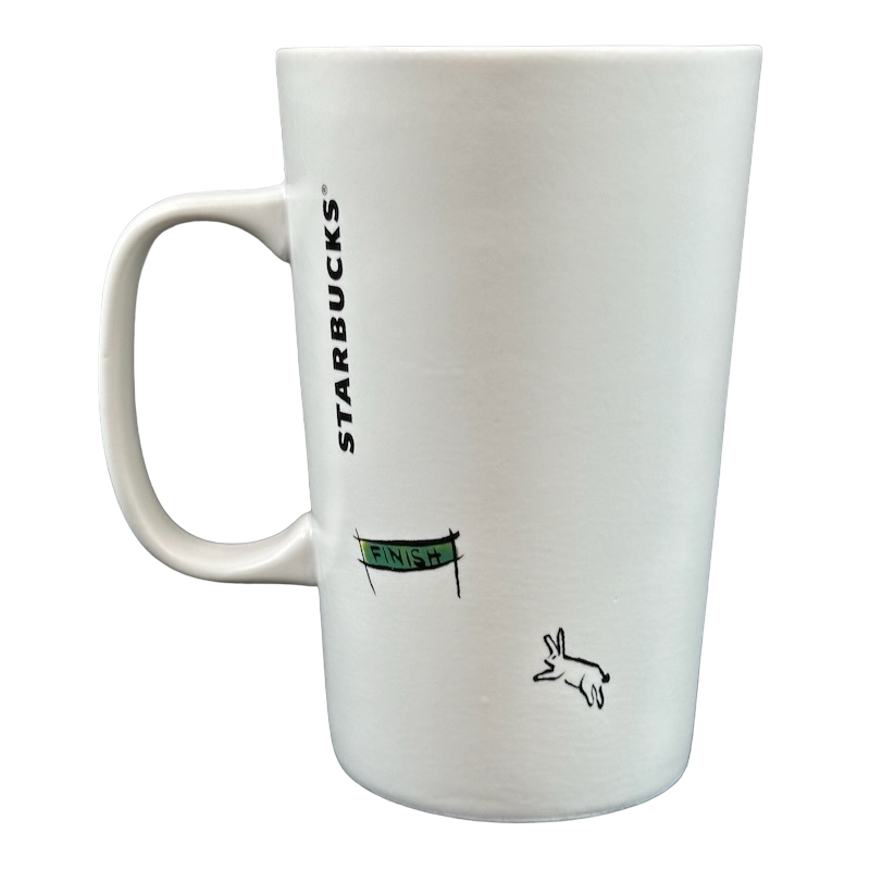 Features a tortoise with a colorful shell on its front surface and a hare approaching the finish line on its rear surface.