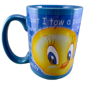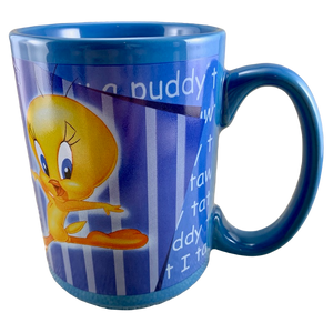 This extremely rare mug features an image of Tweety bird on its front surface and a different image of Tweety on its rear surface.