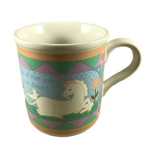 Above the unicorn on the front is printed, "Be all that you can dream!"
