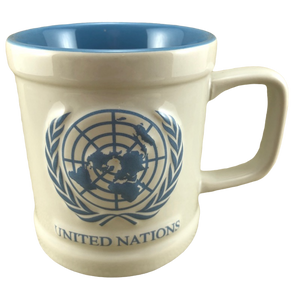 Features the same artwork on its front and rear surface consisting of an embossed image of the United Nations logo on its white surface.