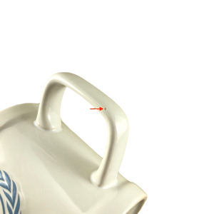 This mug has no chips, cracks, scratches, stains or crazing. There is a small nick on the handle, please see the red arrow pointing to this in the last photo.