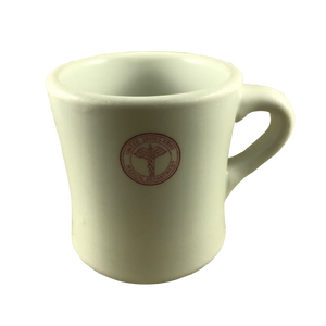 Vintage heavy diner style mug with a logo on one side that reads, "United States Army Medical Department."