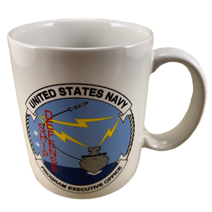 Above the ship is printed "United States NAVY", below the ship is printed "PROGRAM EXECUTIVE OFFICE" and next to the ship is printed "SHIP DEFENSE."