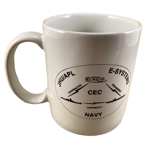 Printed above this is "JHU/APL and E-SYSTEMS", in the center between the ships and plane is printed "CEC", and below the ships is printed: