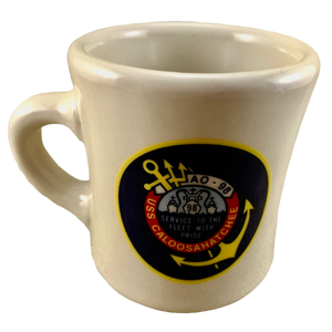 This mug features the USS Caloosahatchee insignia on its rear surface.