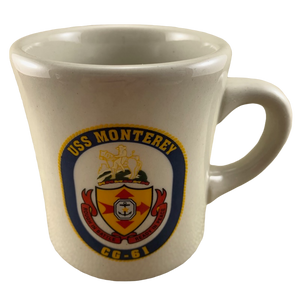 This is a heavy diner style mug with the USS Monterey CG-61 badge centered on its front surface.