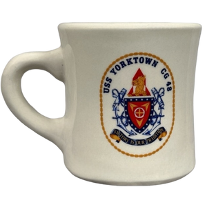 This mug features the USS Yorktown insignia on its rear surface.
