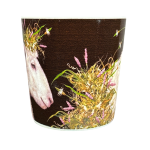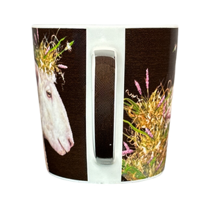 Features the same artwork on the front and rear surface depicting a sheep wearing a fancy headdress.
