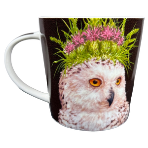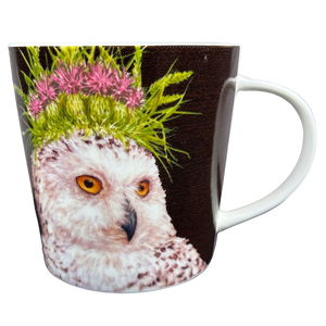 Features the same artwork on the front and rear surface depicting a snow owl wearing a fancy headdress.