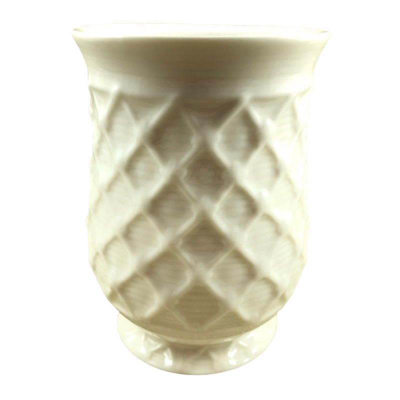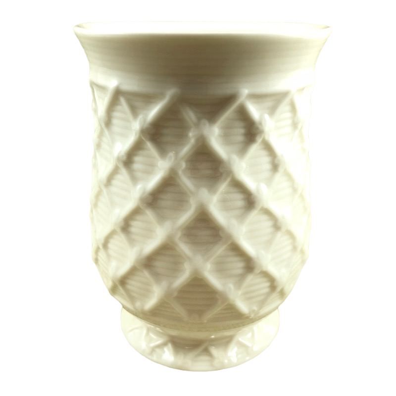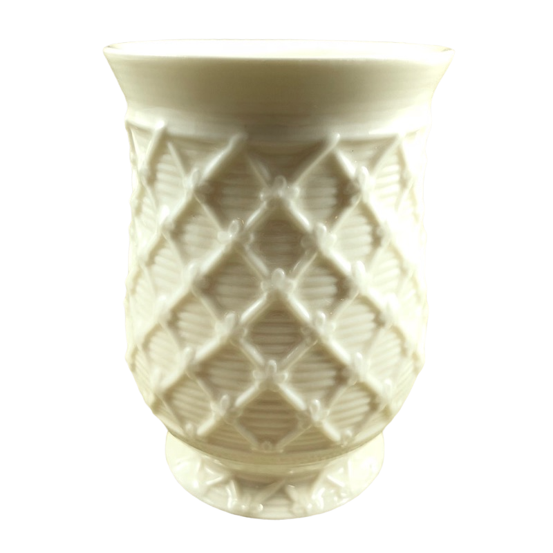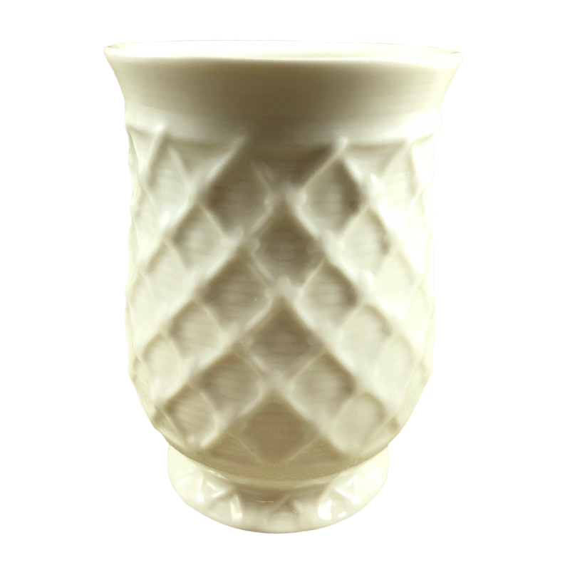 Features a beautiful embossed lattice pattern wrapping around its exterior surface.