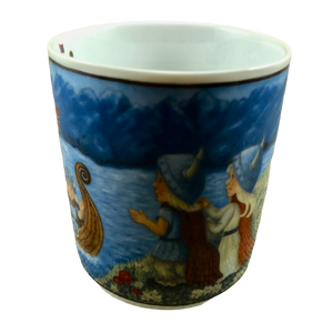 Features artwork wrapping around its exterior surface depicting a viking scene.