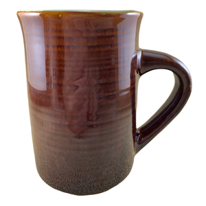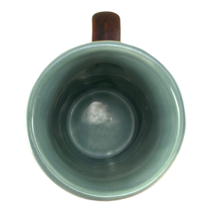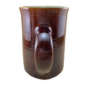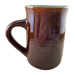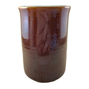 Features a brown and black striped finish wrapping around its exterior surface and a green finish on its interior surface.