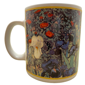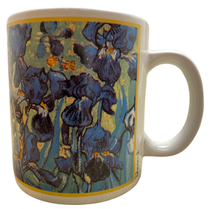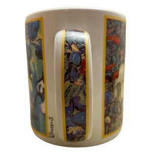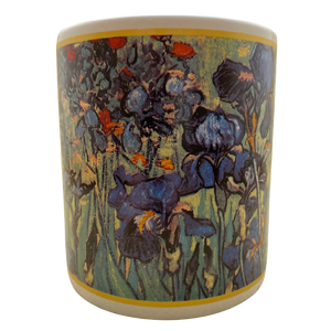 Features floral artwork by Vincent Van Gogh on all sides and the handle.