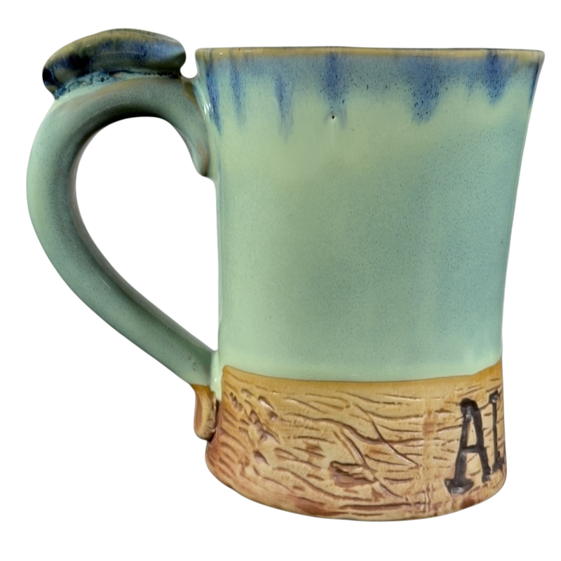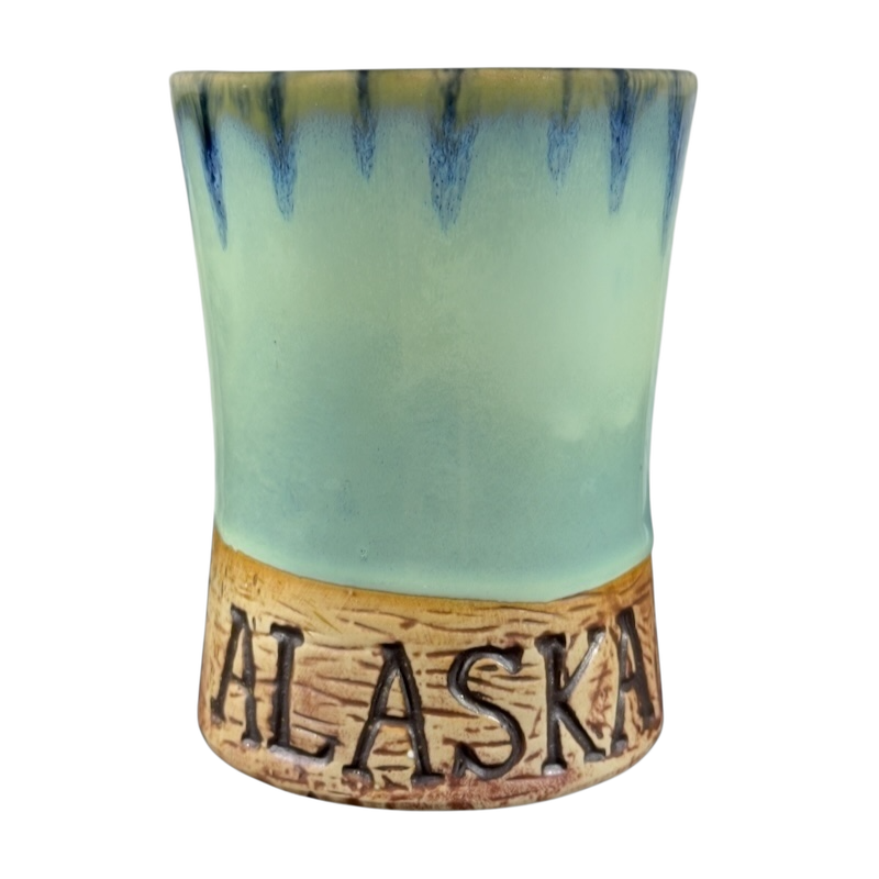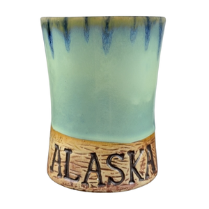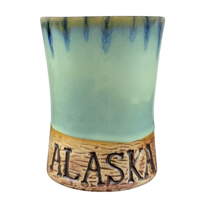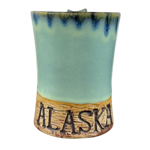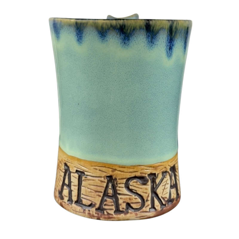 Wrapping around the lower portion of the mug is a wood look area with "ALASKA" etched into it.