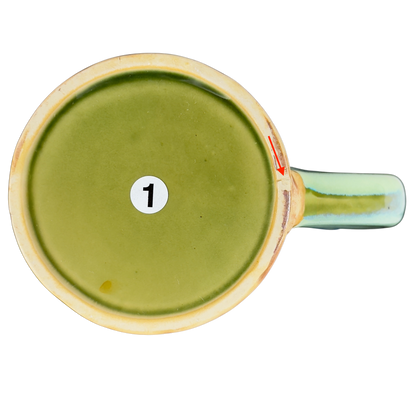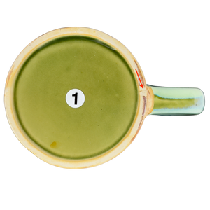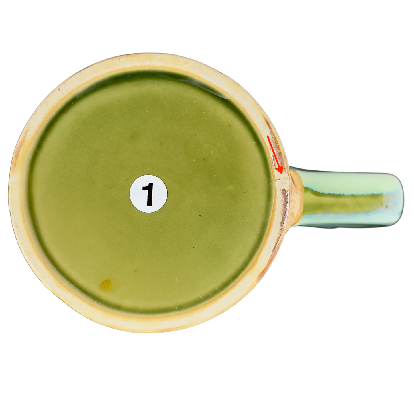 Copy 1: This mug is pre-owned and reconditioned. This mug has no chips, cracks, scratches, stains or crazing. There is a nick on the bottom rim, please see the red arrow pointing to this in the last photo. This is a handmade mug that will have unique characteristics, and vary from one copy to the next. Please look carefully at the photos to see the actual mug you will receive.