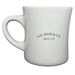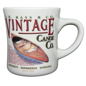 This white ceramic mug features a richly detailed G.H. Bass & Co. Vintage Canoe Co. design, highlighted by a classic canoe illustration, heritage typography, and descriptive text that evokes traditional craftsmanship and outdoor adventure. The front graphic is paired with the familiar G.H. Bass & Co. Since 1876 mark on the reverse, reinforcing the brand’s long-standing legacy. With its smooth glazed finish, comfortable handle, and nostalgic outfitter aesthetic, this mug makes a distinctive collectible for fans of G.H. Bass, vintage outdoor themes, and classic Americana branding.