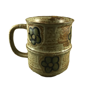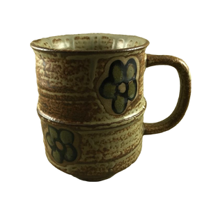 This is a very vintage mug with embossed flowers on its exterior.