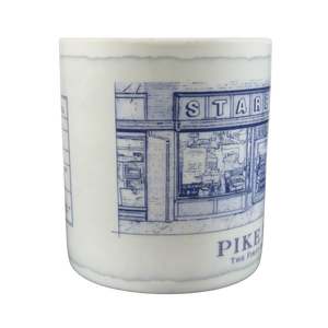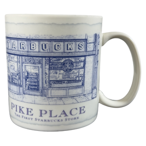 Features an image of the first Starbucks Store in Pike Place, New York with the following printed beneath: