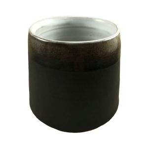 It has a unique finish, the upper 1/3 is a shiny glaze made up of mulitple browns and the lower 2/3 is a different more solid monotone brown that has a matte finish.