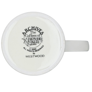 The mug is finished in a clean white glaze inside and out, giving the colorful graphics even more visual impact. The underside features the official Archives: The Coffees of YesterYear stamp, copyright 1999, confirming its authenticity as part of this collectible series produced by Westwood.