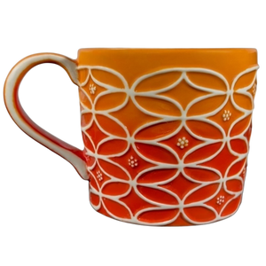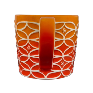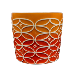 Features an embossed ombre abstract pattern with tiny flowers mixed in wrapping around its exterior surface.