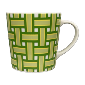 Features a vintage woven folding green and yellow lawn chair pattern wrapping around its exterior surface.