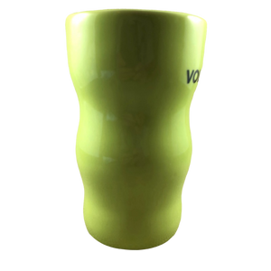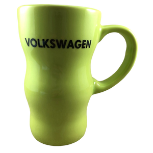 This is a very unusually shaped mug with "VOLKSWAGEN" printed on its front upper surface in a large black font.
