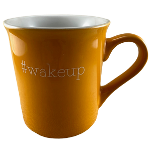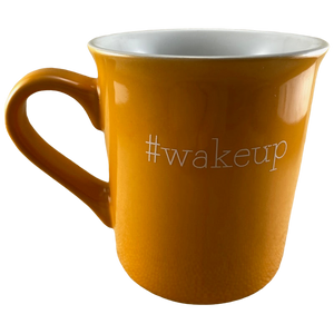 Printed in a white font on its front and rear surface is "#wakeup"