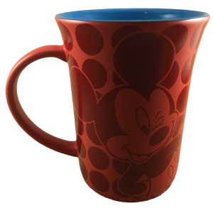 The front and rear exterior surface features the same artwork. This consists of an image of Mickey Mouse with red polka dots filling in the space behind him.