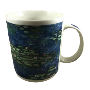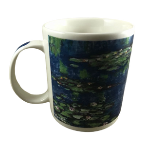 Features artwork by Claude Monet depicting water lillies on all sides and the handle.