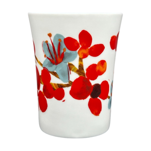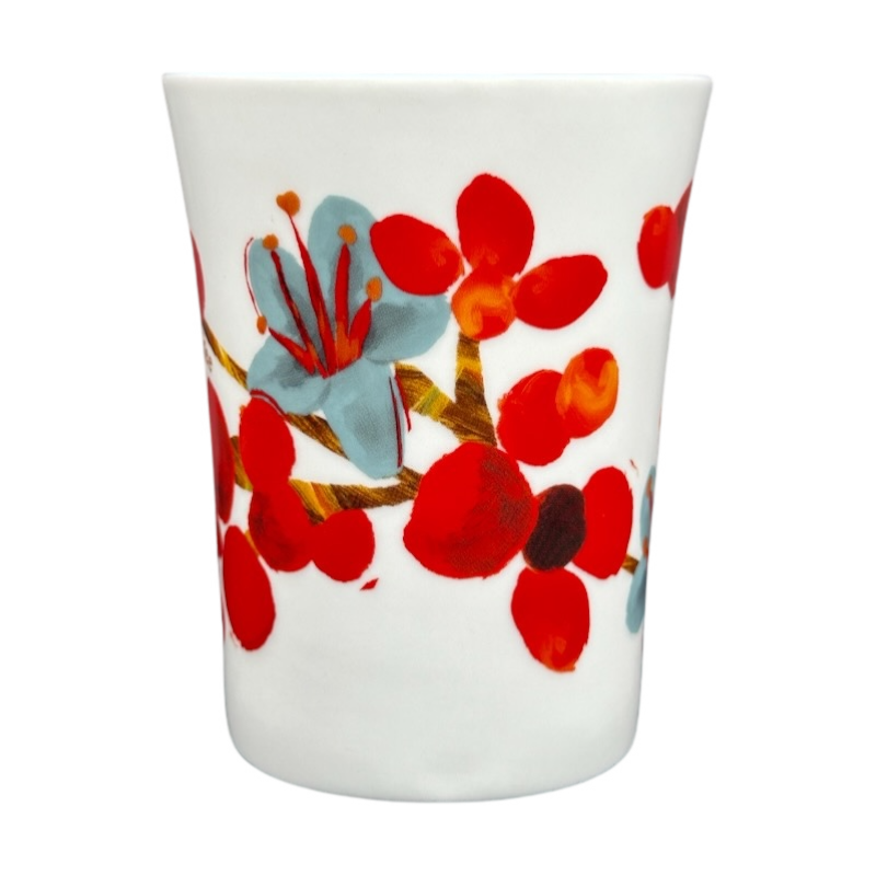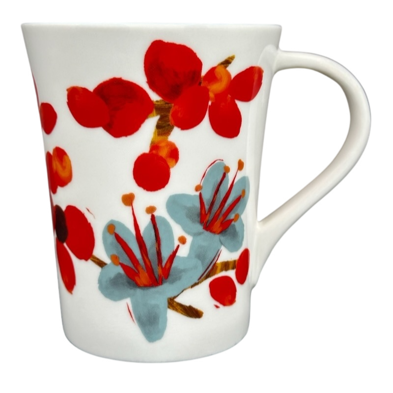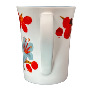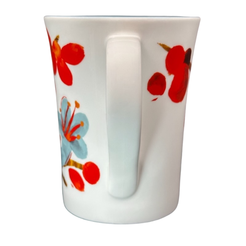 It features flowers painted in a watercolor style wrapping around the surface of this mug.