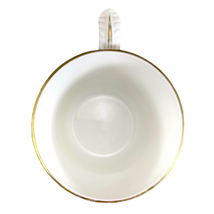Also has gold trim wrapping around the rim and on a few parts on the sides of the handle and the top of the handle.