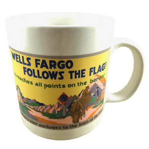 Features an image on the front surface that depicts a Wells Fargo employee on horseback delivering packages to soldiers on the front.