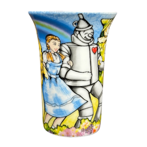 The artwork depicts Dorothy arm to arm with the Cowardly Lion, The Tin Man, and The Scarecrow.