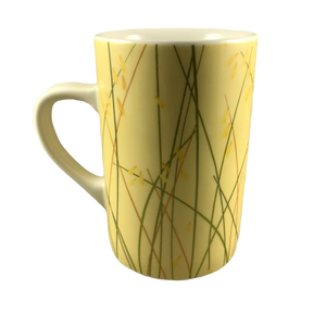 Features a wheat grass pattern wrapping around this mug.