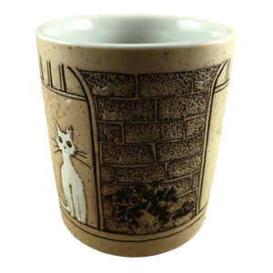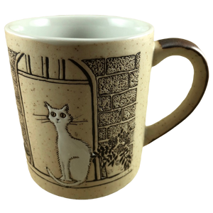 Features the same lightly embossed artwork on the front and rear surfaces consisting of a white cat sitting in front of a window on a ledge.