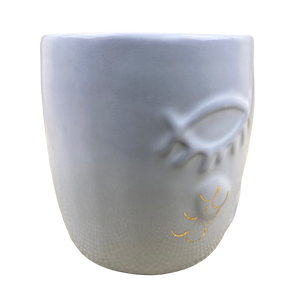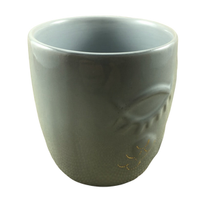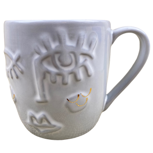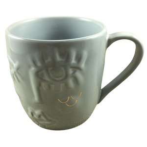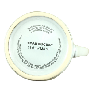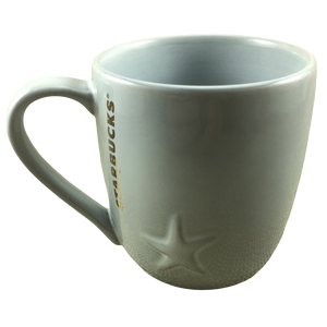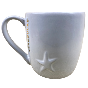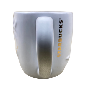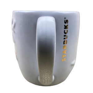 Also has gold accents on the Siren's cheeks and "STARBUCKS" printed vertically on the rear surface next to the handle in a matching gold font.