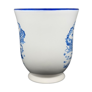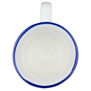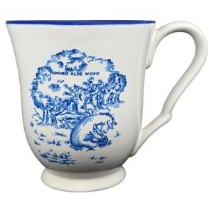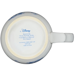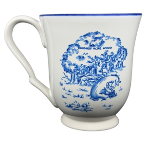 This charming stoneware mug features a classic blue and white design inspired by the Winnie the Pooh works of A.A. Milne and E.H. Shepard. The front and back of the vessel showcase a detailed illustration of Eeyore sitting beneath a large tree in the Hundred Acre Wood, accented by a vibrant blue rim and a uniquely contoured handle. Crafted for both beauty and utility, this Disney licensed piece is microwave and dishwasher safe, making it a practical addition to any kitchen or a thoughtful gift for a fan of the classic series.