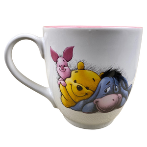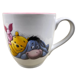 This is a larger than average mug that features the same image of Winnie The Pooh, Eeyore, and Piglet on its front and rear surface.