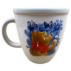 Features the same image of Winnie the Pooh picking a flower with a butterfly and other flowers behind him.