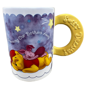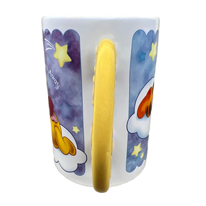 This mug features a unique handle shaped like the moon with "Sweet Dreams!" embossed on its front and rear surface.