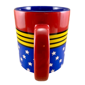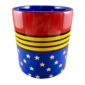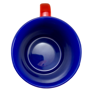 The lower half of this mug is blue with white stars.