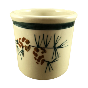 Features a leaf, berries, pine cones and needles wrapping around its exterior surface.