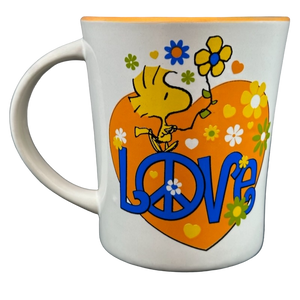 Features the same artwork on its front and rear surface depicting an image of Woodstock holding a flower. He's standing on the Word LOVE inside a large orange heart on the front surface.