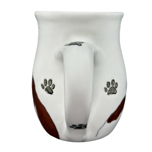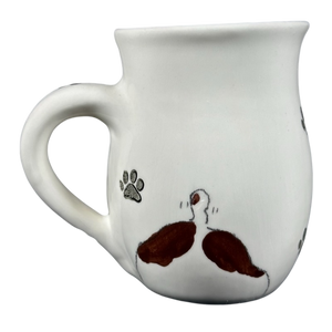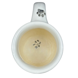 There are four paw prints scattered around the exterior surface, one on the handle, and one inside on the bottom surface.