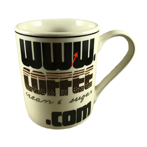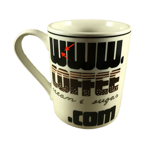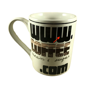 Copy 1: This mug has no chips, cracks, scratches, stains or crazing. There is a very small nick located in the third W of WWW on the back side of the mug. See the photo where a red arrow points to this tiny imperfection.